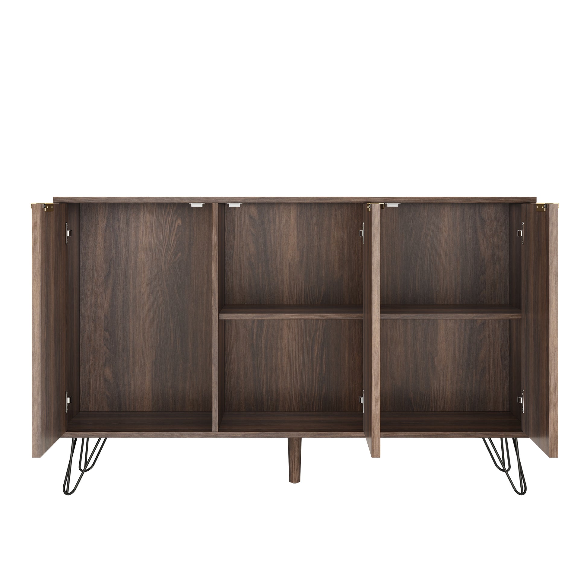 Behind the three doors are spacious compartments with adjustable shelving, offering versatile storage for dinnerware, books, electronics, or everyday items. Thoughtful details like metal hardware and balanced leg support make Arden as functional as it is stylish. Whether used as a statement console or a practical organizational anchor, this sideboard brings warmth, convenience, and design-forward character to your home.