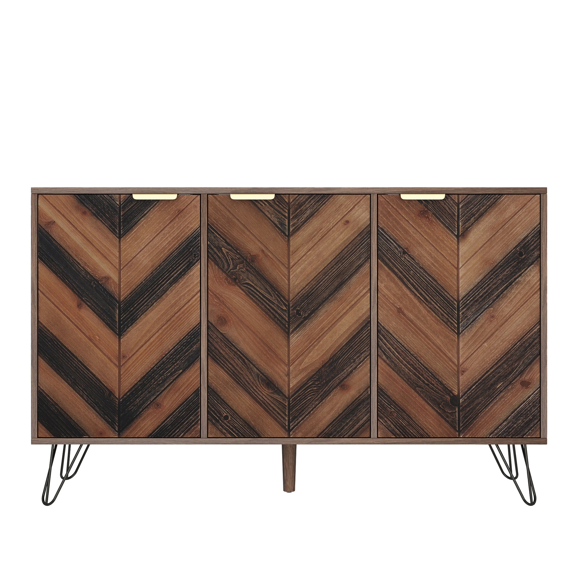 Arden Chevron Wood-Pattern 3-Door Sideboard with Adjustable Shelves, Natural