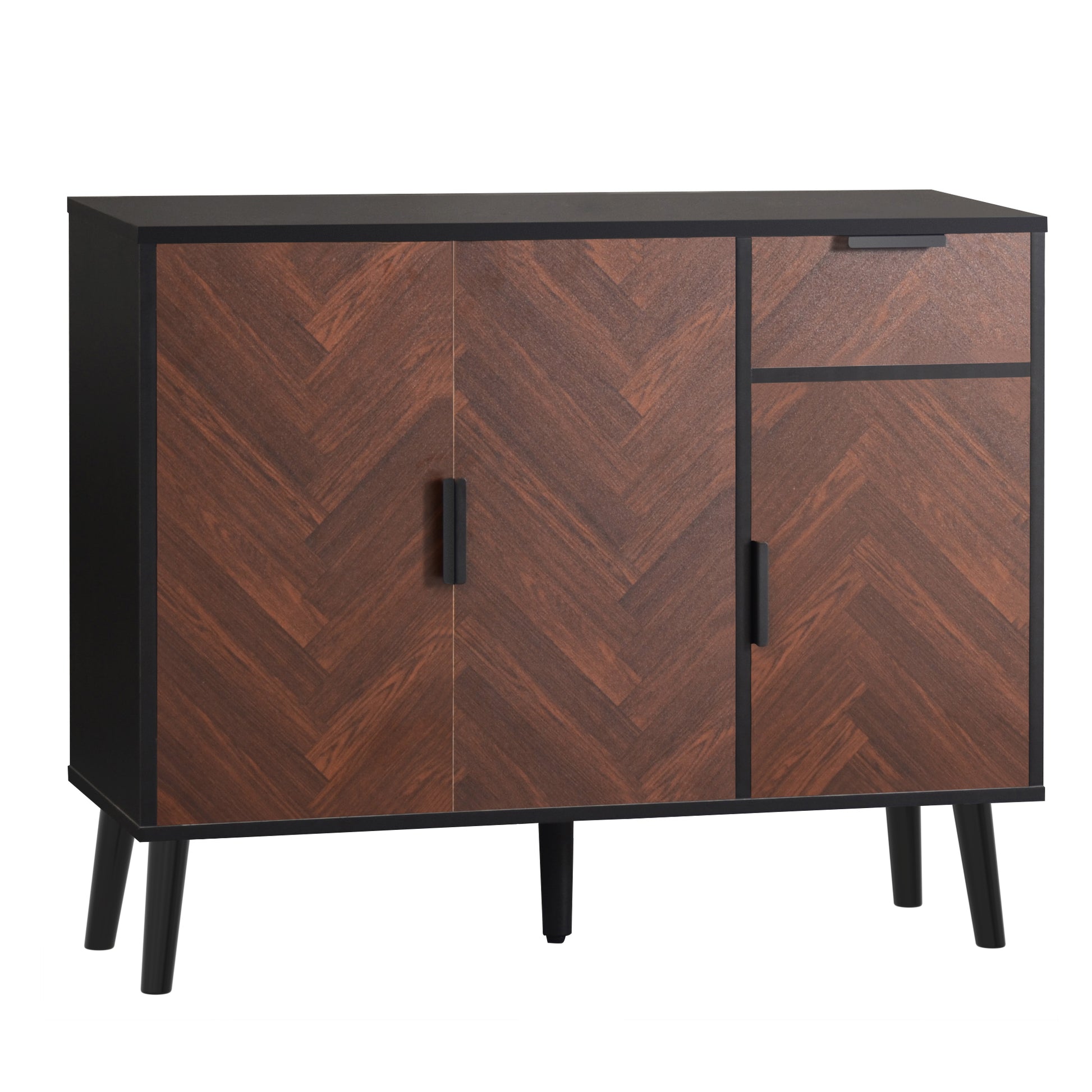 The Ashbury cabinet combines a warm wooden finish with a clean black frame, creating a balanced look that works beautifully in entryways, hallways, living rooms, or compact spaces. Its 35.5" width makes it easy to place without overpowering the room, while the herringbone door fronts add subtle texture and a refined design touch.