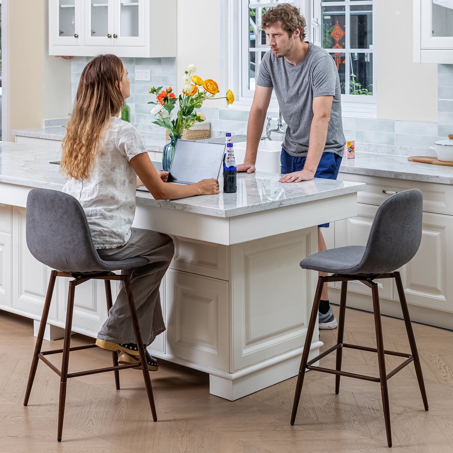 The Charlton swivel bar stools bring relaxed modern style into everyday dining spaces, condos, and kitchen islands. Designed with a softly curved fabric seat and smooth 360° swivel, this set of 2 adds comfort without taking up visual space. Their counter-height profile works naturally with kitchen islands, breakfast bars, or open-plan interiors.