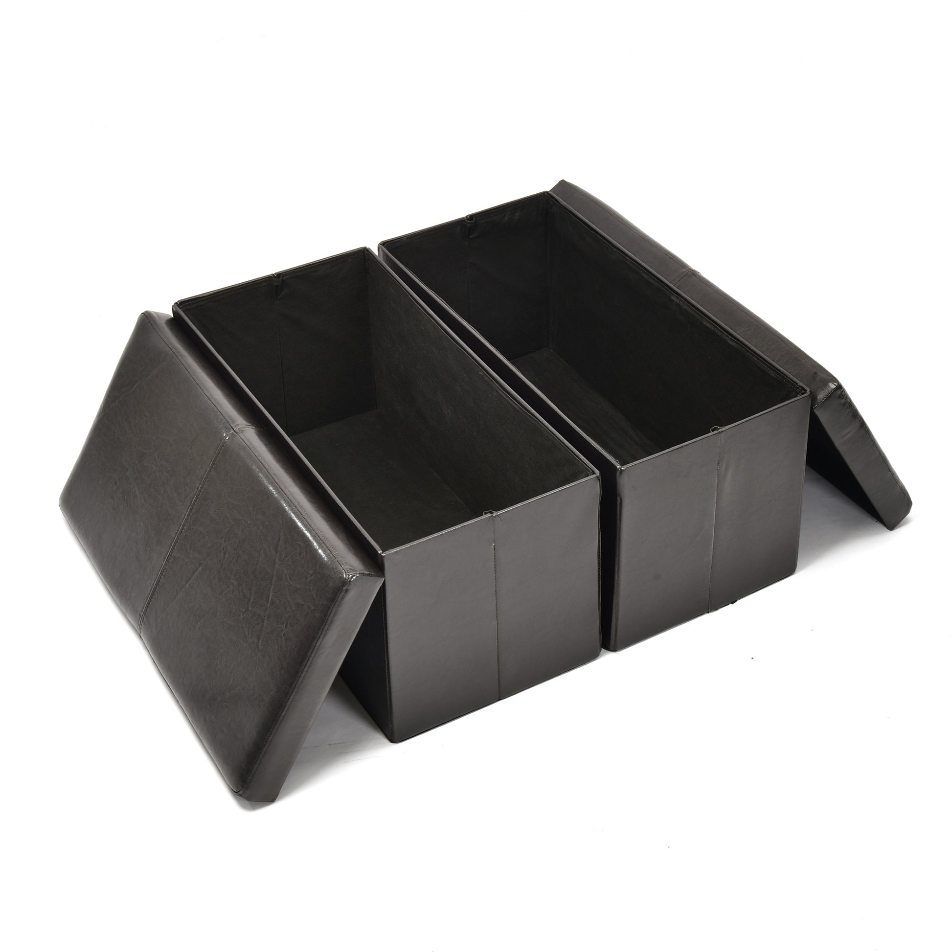 Eli Faux Leather Folding Storage Ottomans, Set of 2, Black