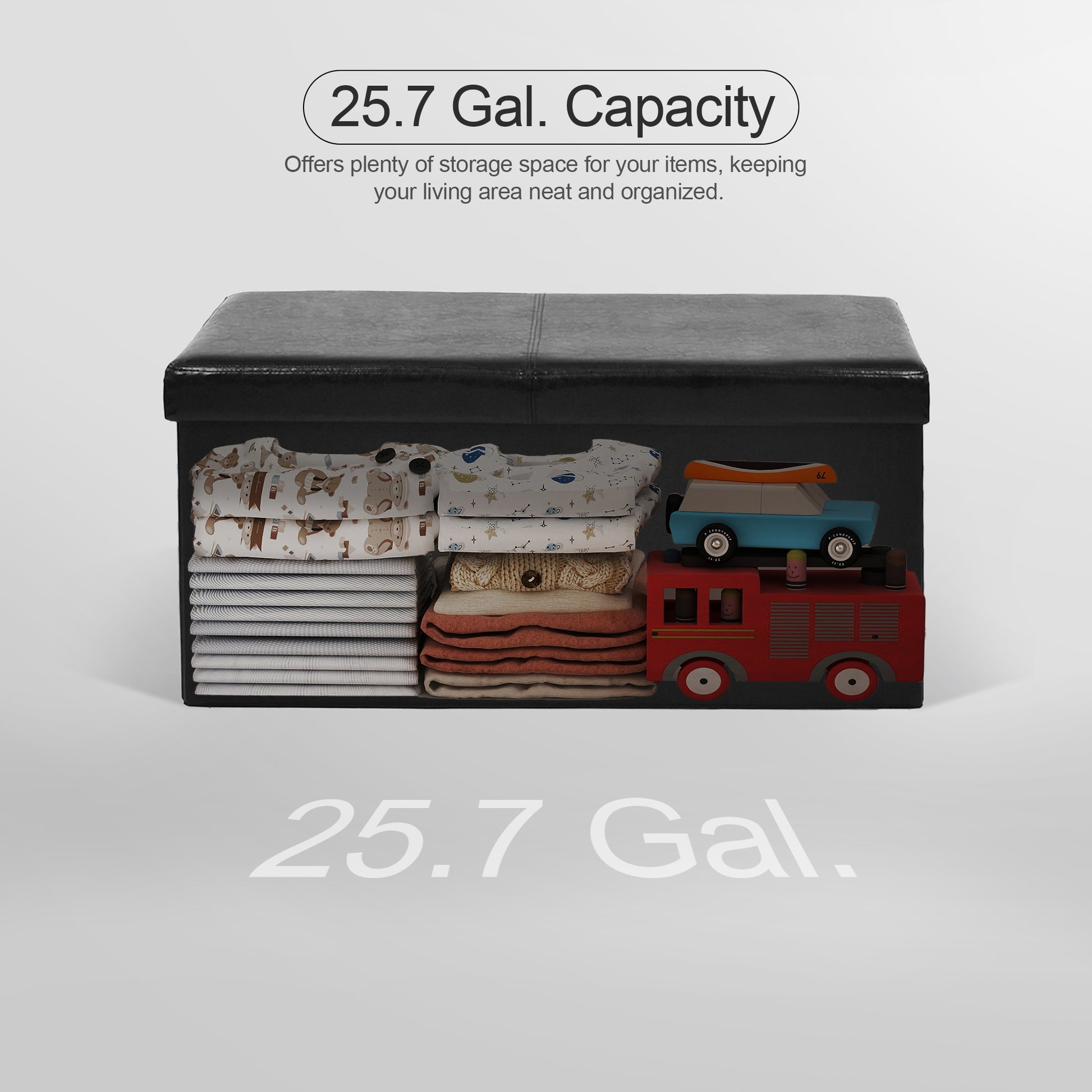 • Hidden interior storage ideal for blankets, accessories, toys, or small items