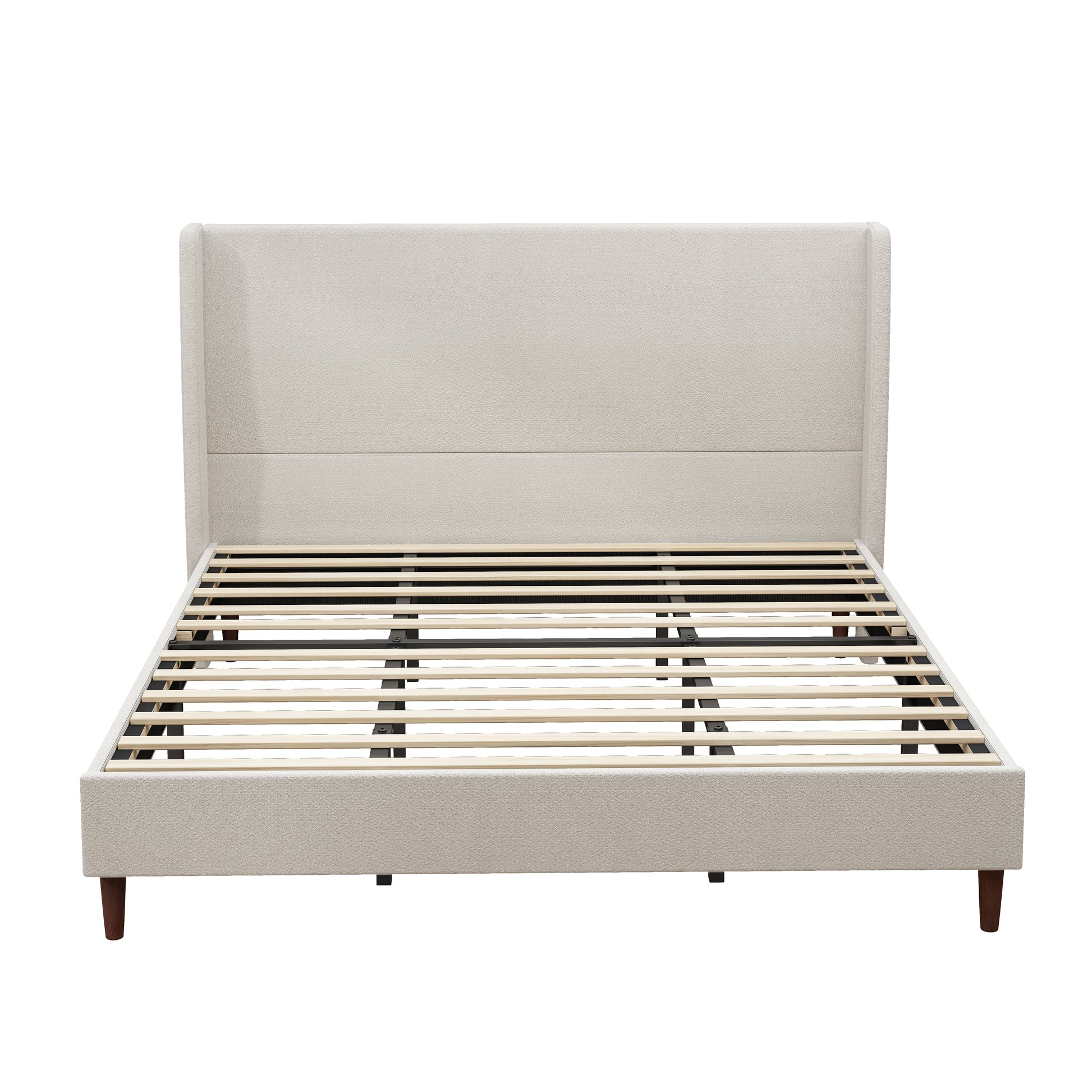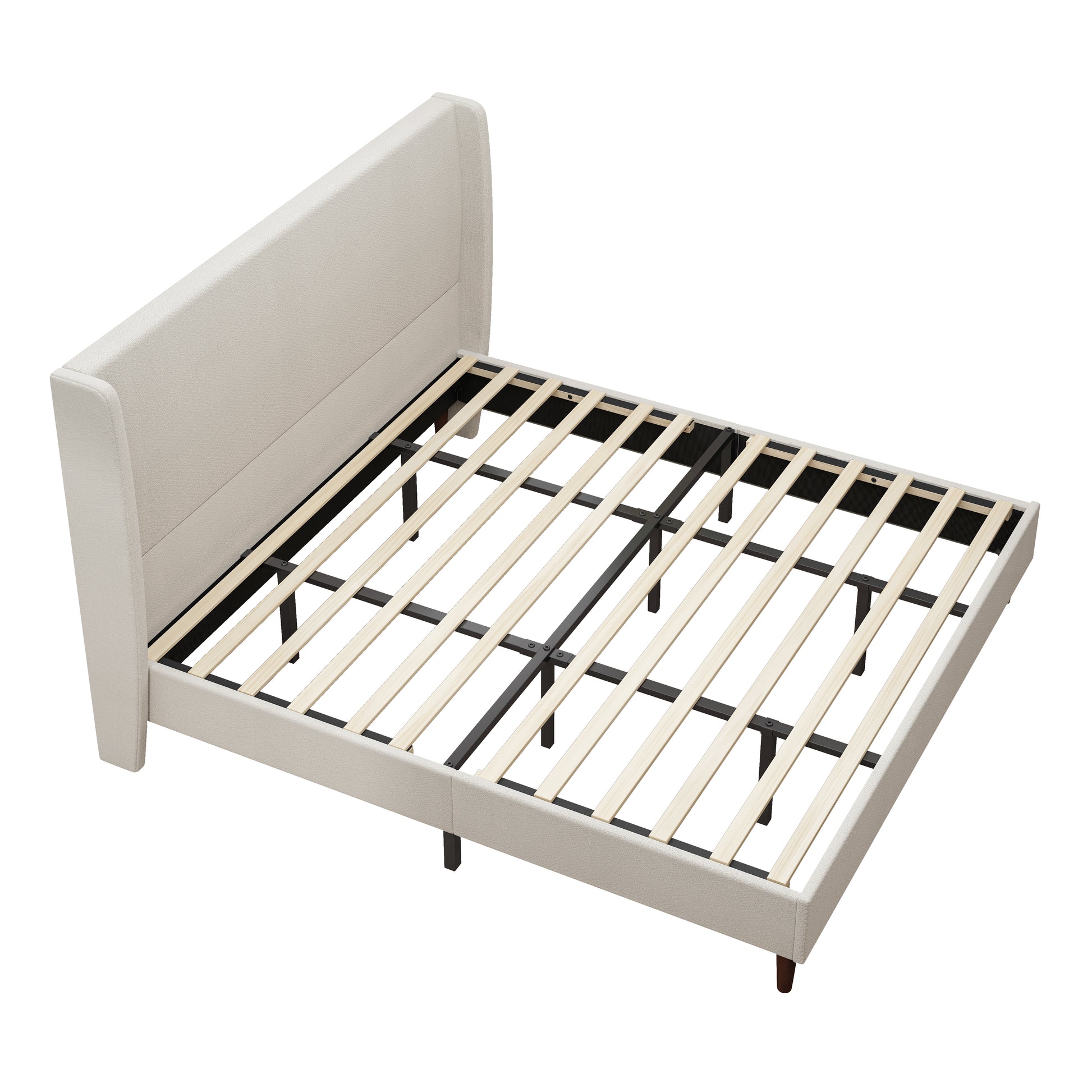 - King-size upholstered platform bed frame with a tall, cushioned headboard