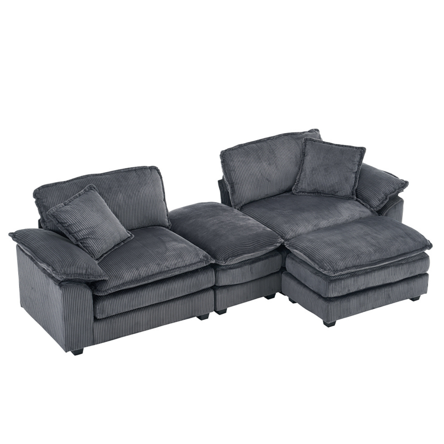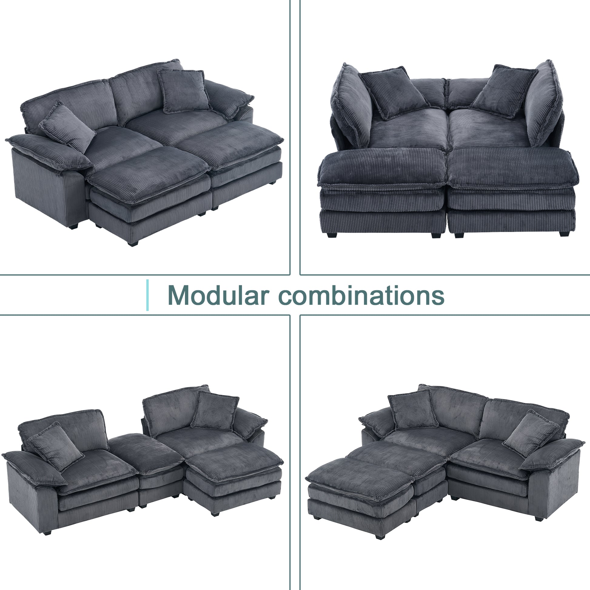 Everett Modular Sofa Set with Ottomans, Grey Corduroy
