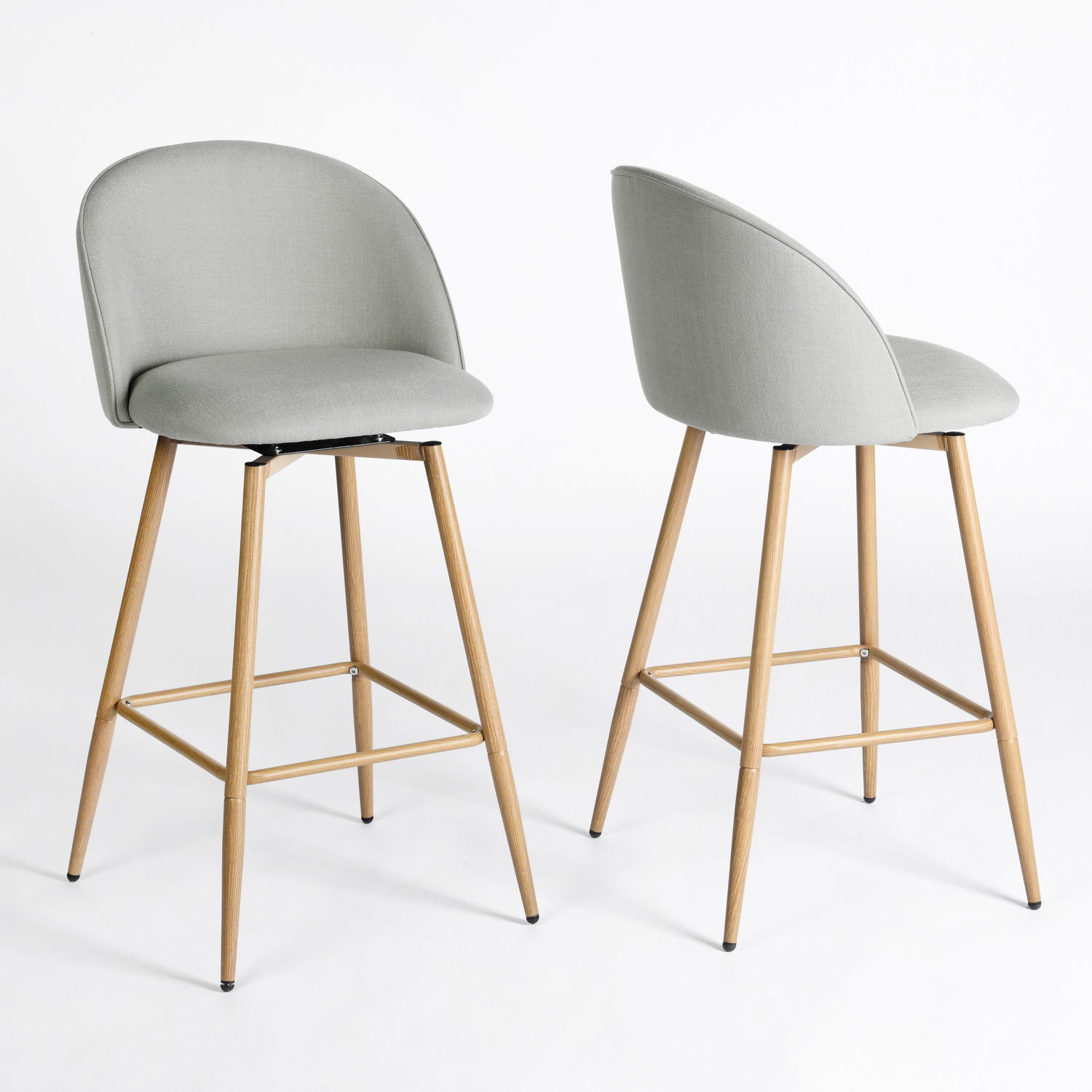 Haseeb Swivel Counter Stools with Oak-Look Legs, 26", Set of 2, Gray