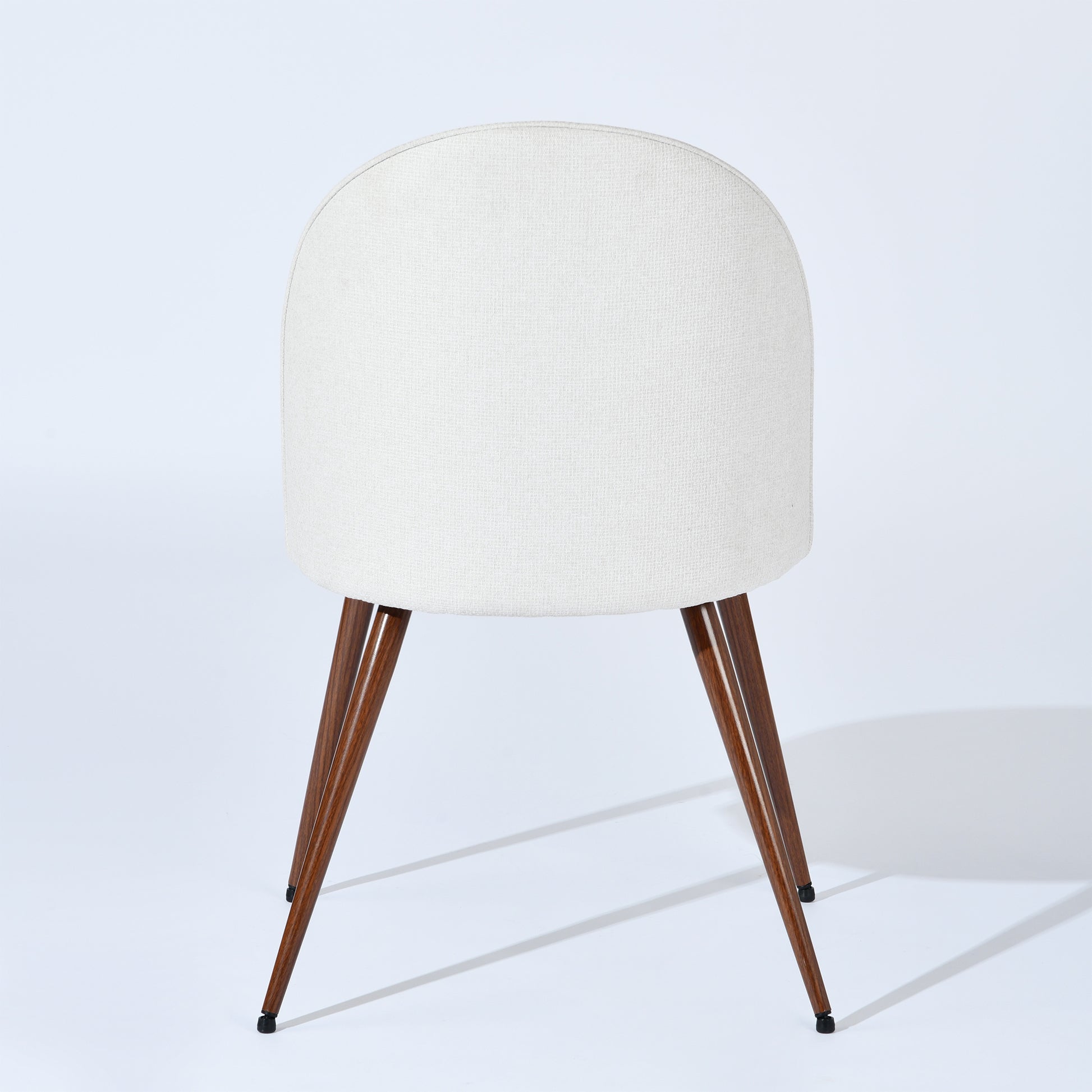 Slim metal legs wrapped in a walnut-look finish keep the silhouette balanced and refined while adding a subtle wood-inspired texture. The compact footprint makes these chairs ideal for dining rooms, kitchen nooks, condos, and smaller layouts where every inch matters. Haven delivers a clean, modern feel without sacrificing comfort or stability.