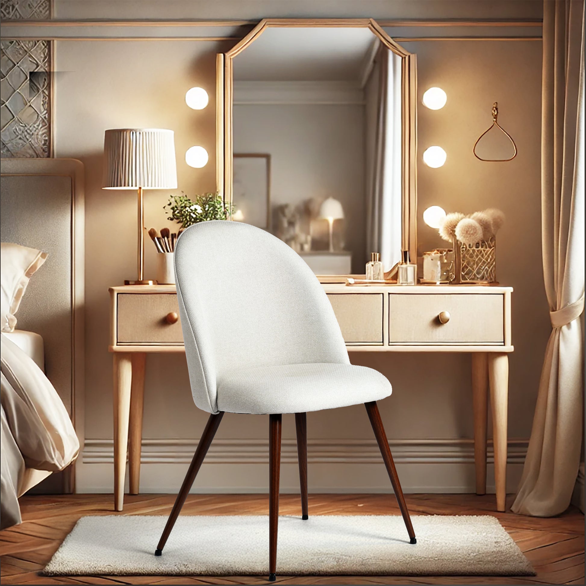 A soft, welcoming shape defines the Haven dining chair set, bringing warmth and simplicity to everyday meals. The curved high back and smooth fabric upholstery create a comfortable spot to settle in, whether you're having a quick breakfast or hosting a long dinner. The beige tone offers an easy, modern-neutral look that blends naturally into light, warm, or minimalist interiors.