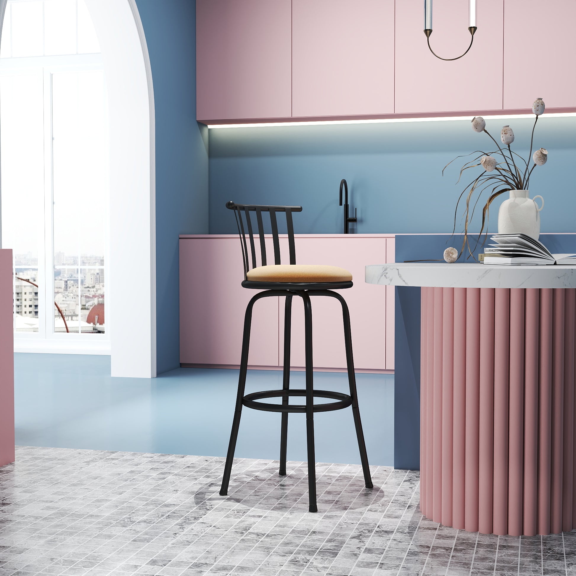 A comfortable and versatile stool can make a kitchen island or bar area feel effortless, and the Pistil Stools are designed with that flexibility in mind. Each chair includes two interchangeable leg pieces, allowing you to switch between a 24" counter-height setup or a 29" bar-height setup depending on your space. The cushioned faux suede seat adds a soft, warm touch, while the open-back metal frame keeps the look light and modern.