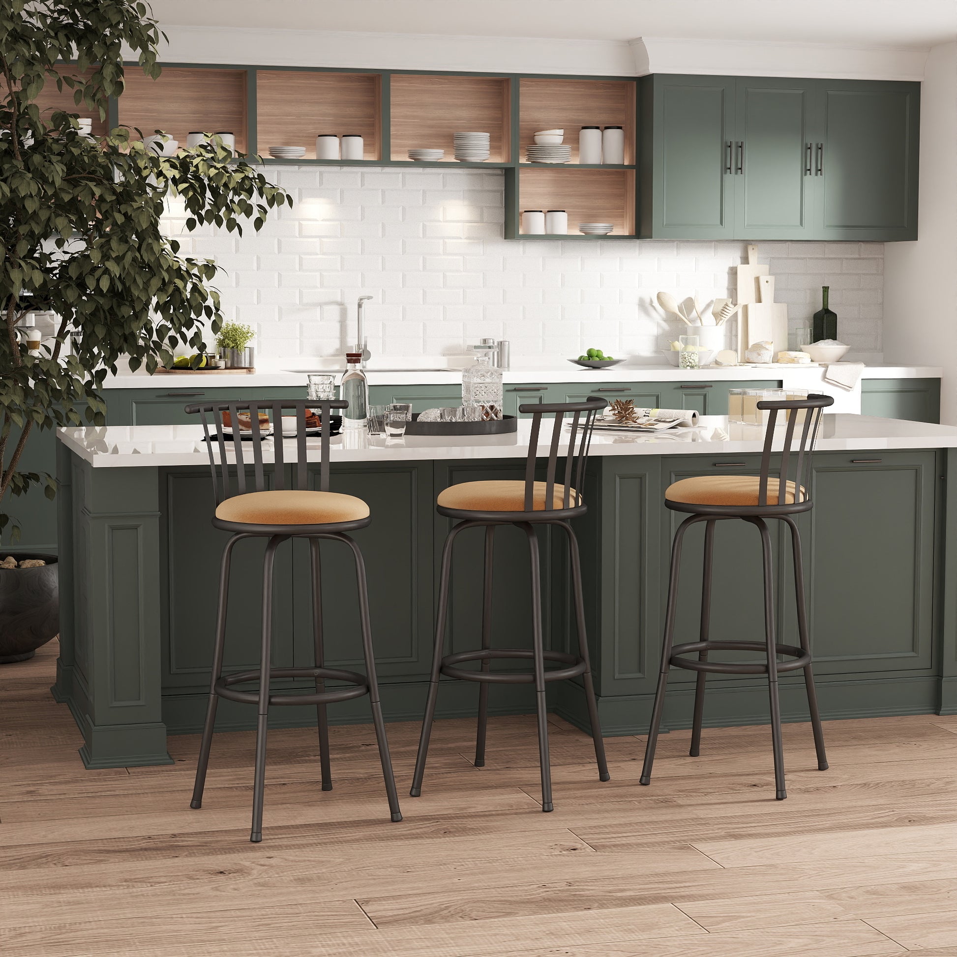 Pistil 24"/29" Adjustable Swivel Counter & Bar Stools, Set of 3, Beige & Black
