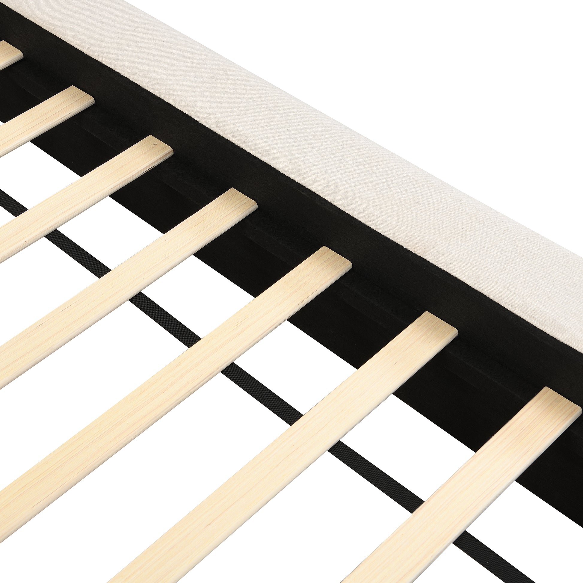 The softly padded headboard and footboard add visual balance while enhancing everyday comfort, making Porter ideal for relaxed evenings and slow mornings alike. Upholstered in a beige linen-look fabric, it brings breathable texture and warmth to the room, pairing easily with wood tones, neutral palettes, and layered bedding.