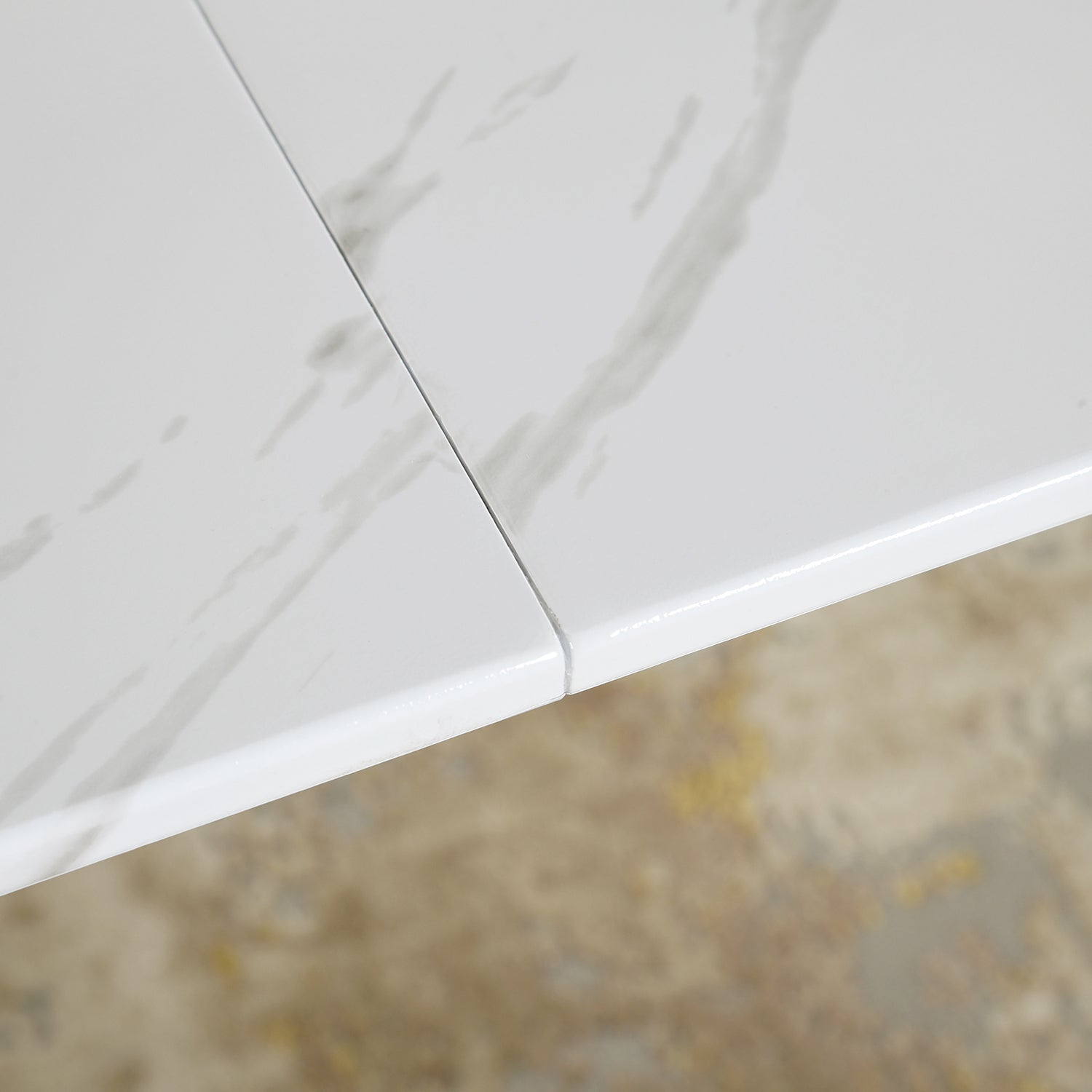 Stan Modern Dining Table, 63" Rectangular, Seats 6, White Marble-Effect