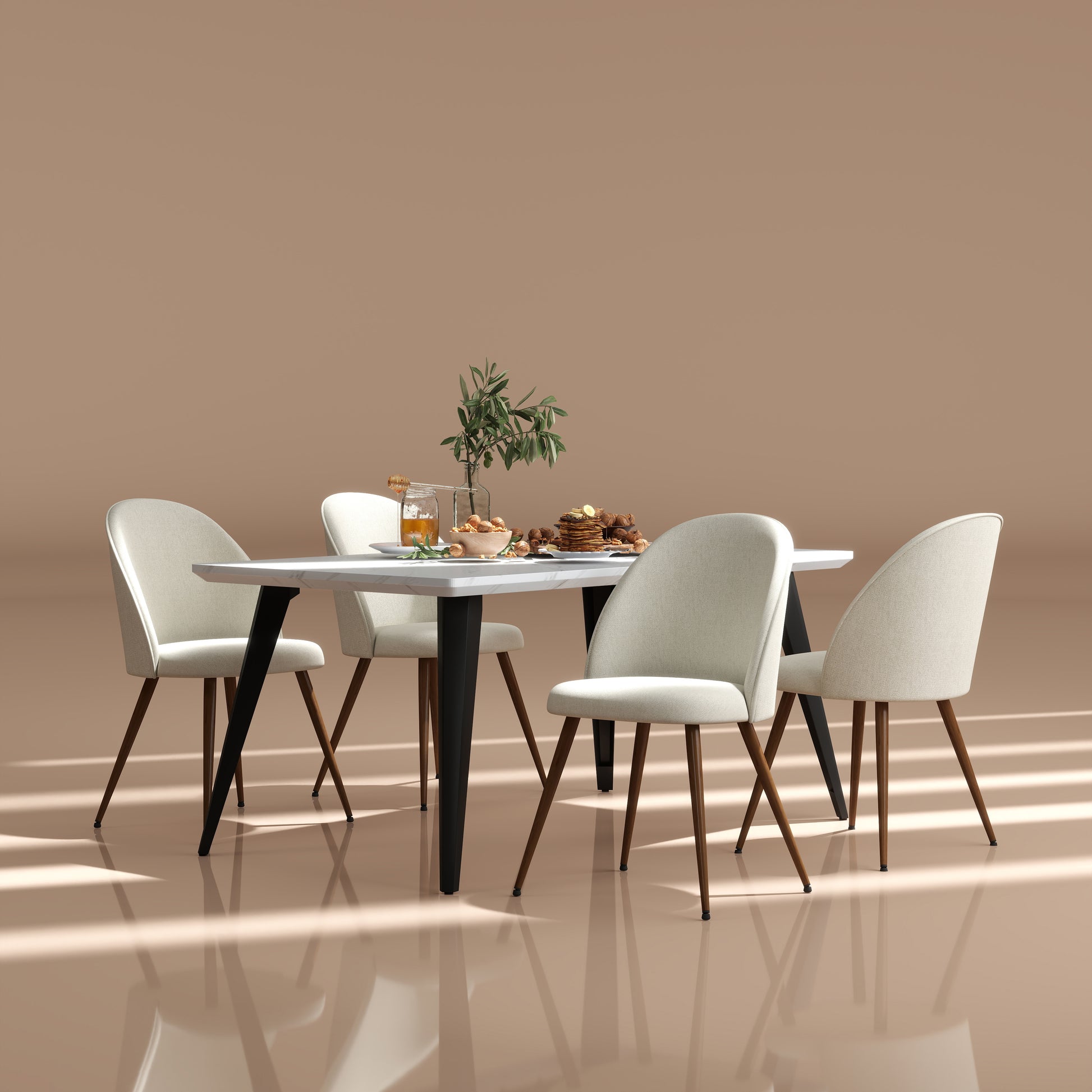 Stan White Marble Dining Table Set with Haven Side Chairs, 5-Piece Set, Beige