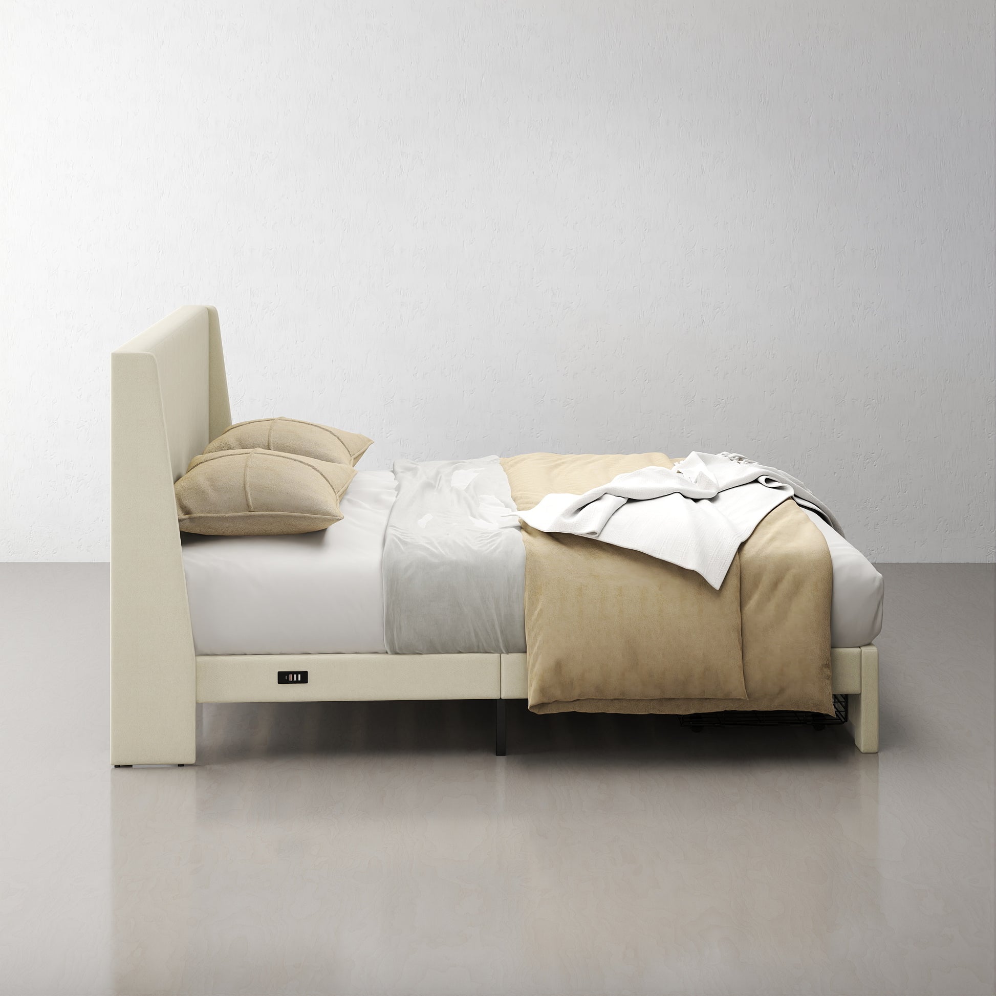 Summit Upholstered Storage Bed Frame with USB Charging, Queen, Beige