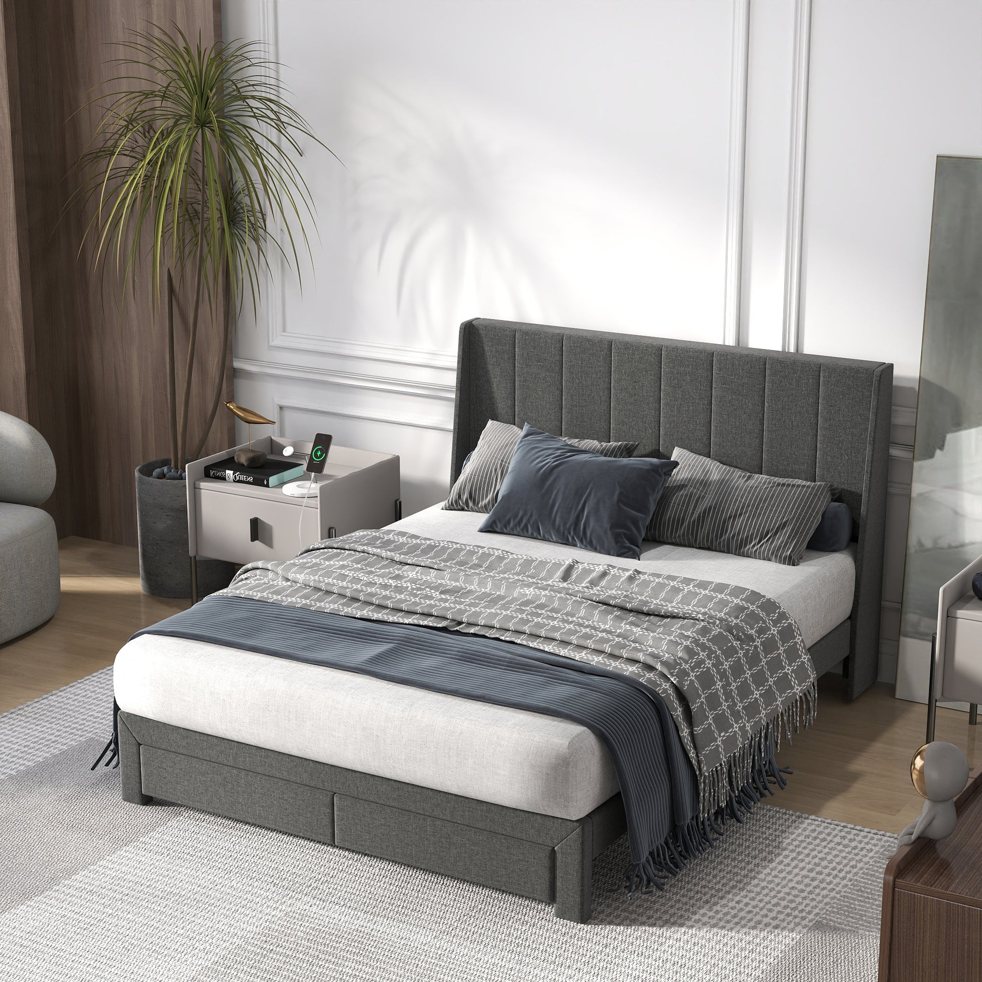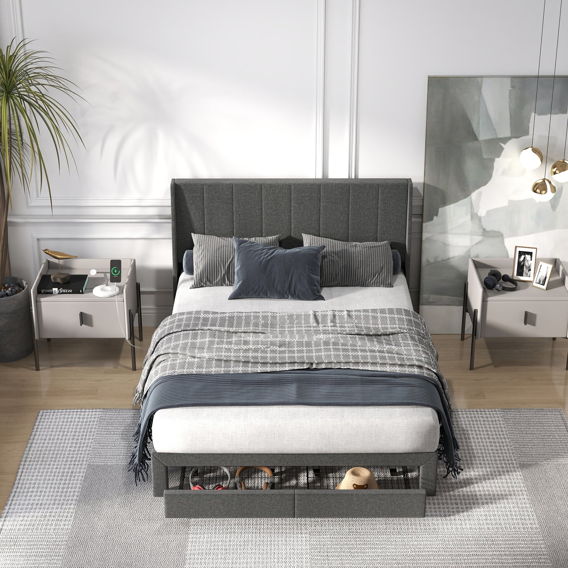 Summit Upholstered Storage Bed Frame with USB Charging, Queen, Grey