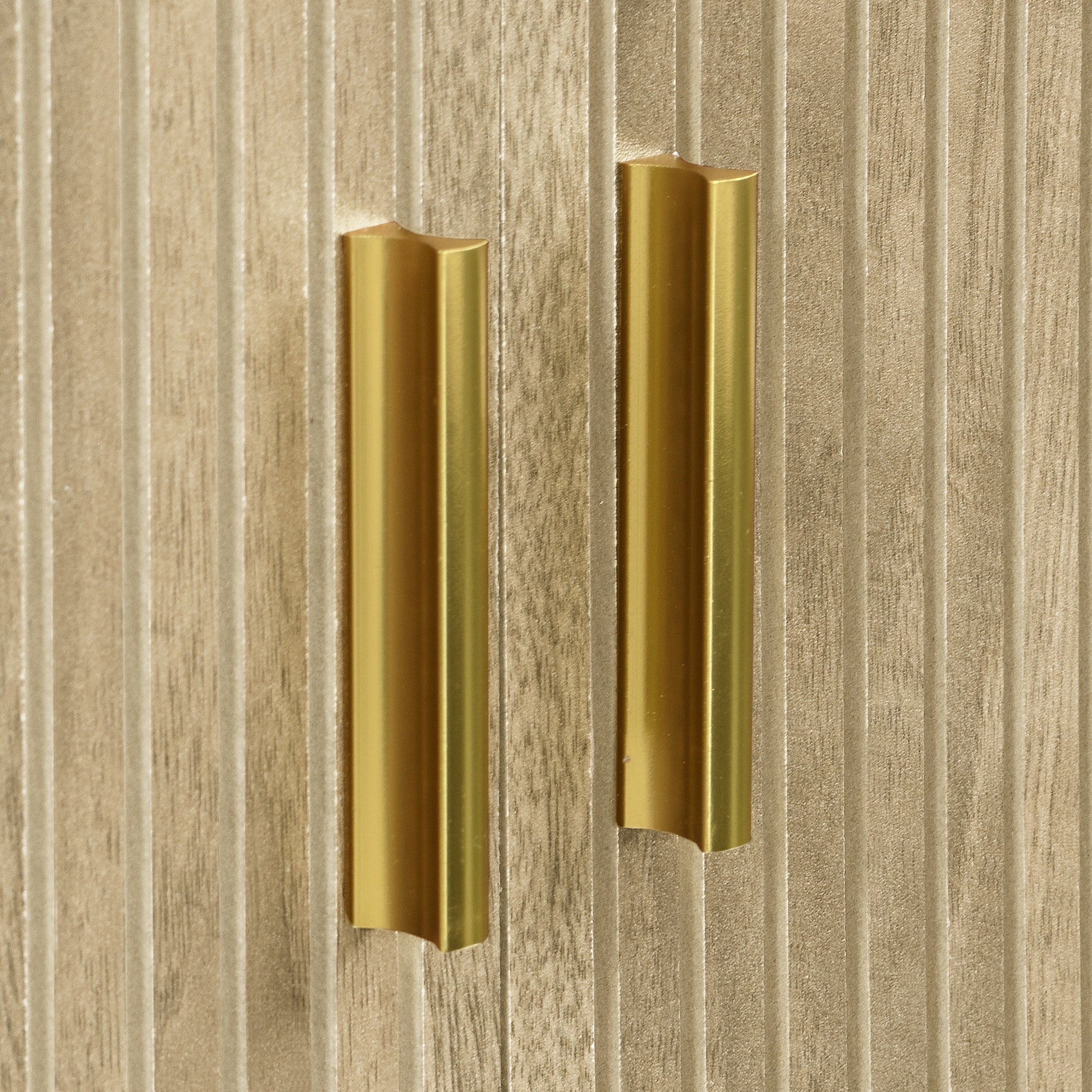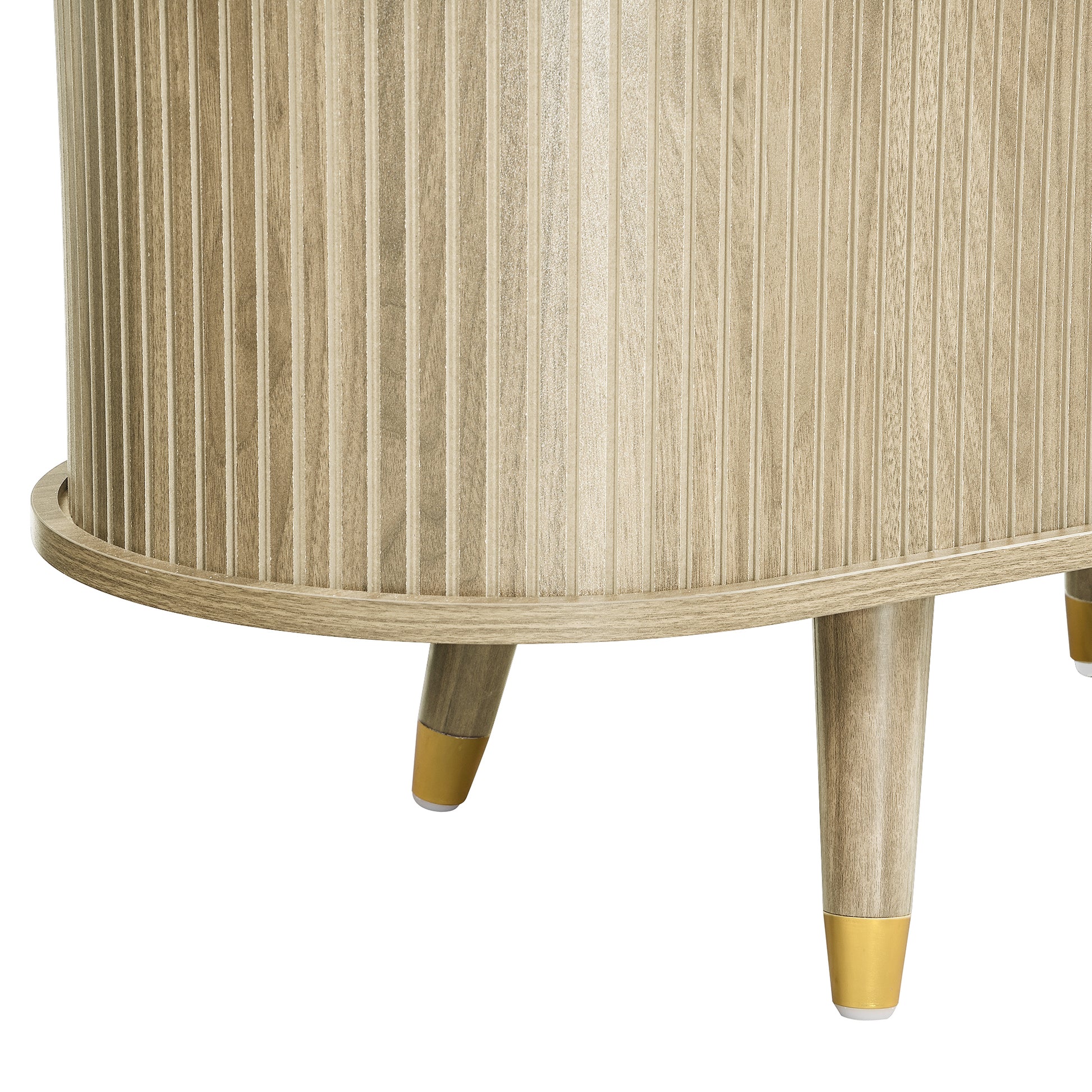 A smooth sliding door introduces both function and character, letting you shift between open display and concealed storage with ease. Finished in a light wood-look tone with subtle metallic accents, Westmere offers an airy, approachable feel that works beautifully in bright interiors, open living spaces, and contemporary Canadian homes.