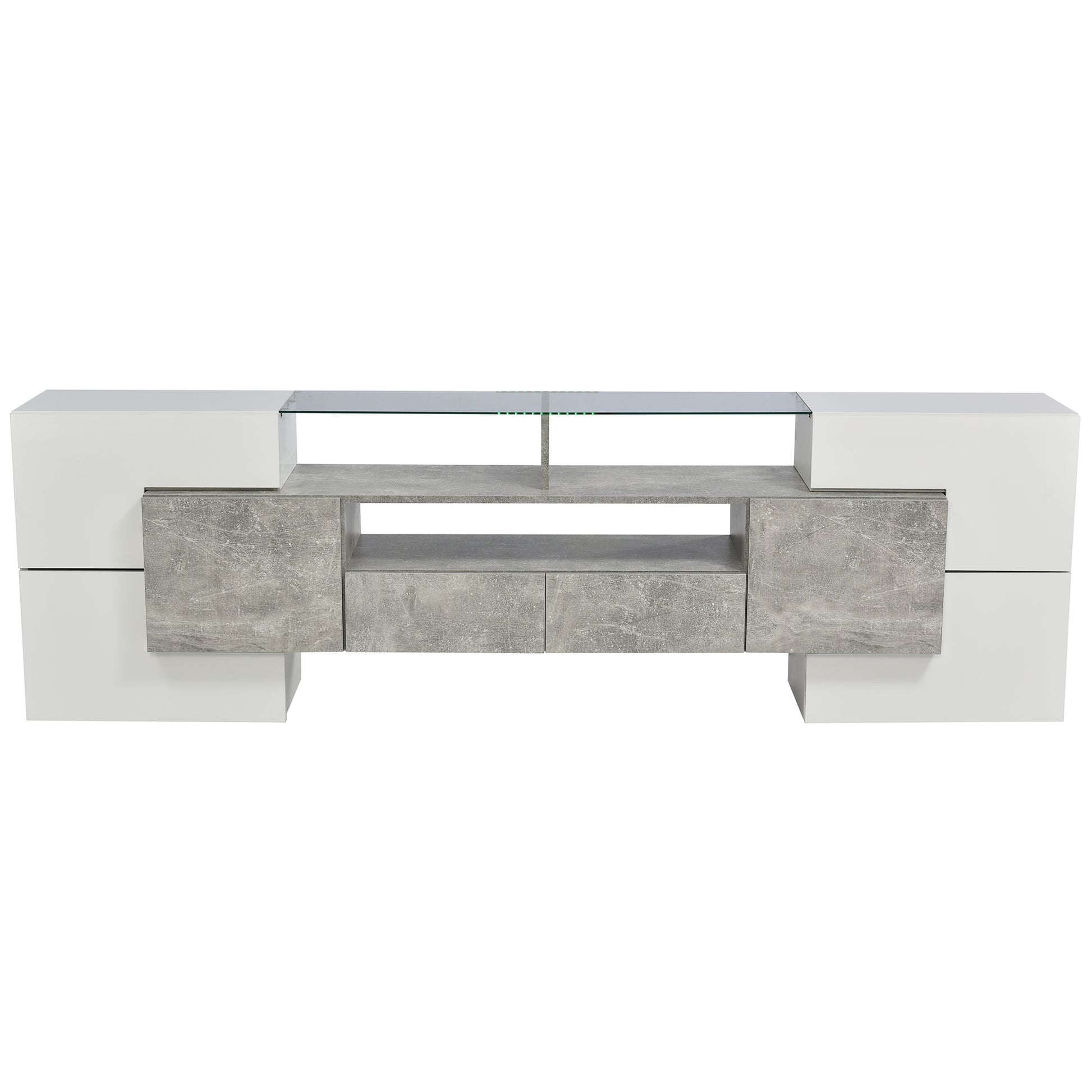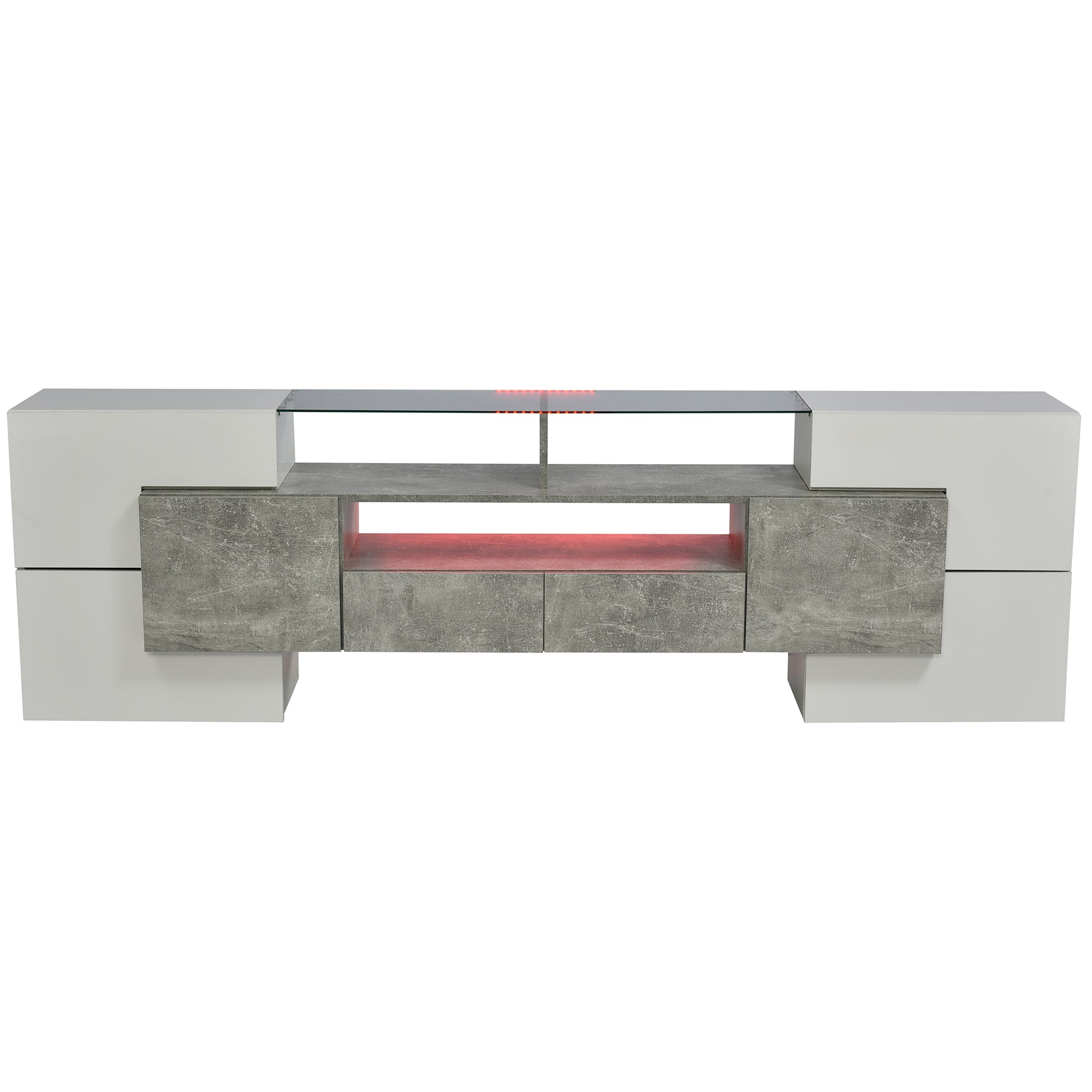 Yorkton TV Stand High-Gloss Modern with LED Lights, 78.7", White and Gray Concrete